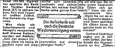 Nanny Tober ist die berühmte Seherin, die die Wiedervereinigung bereits 1988 vorausgesagt hat. Berlin wurde nun eine Hauptstadt, ohne Teilung.